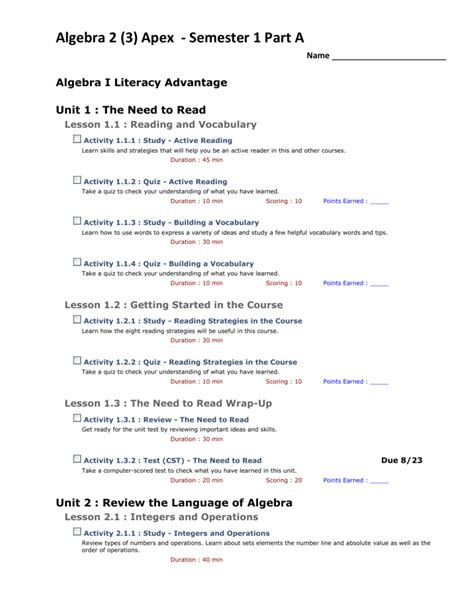 Download Apex Answer Key For Algebra 1 Sem 2 PDF